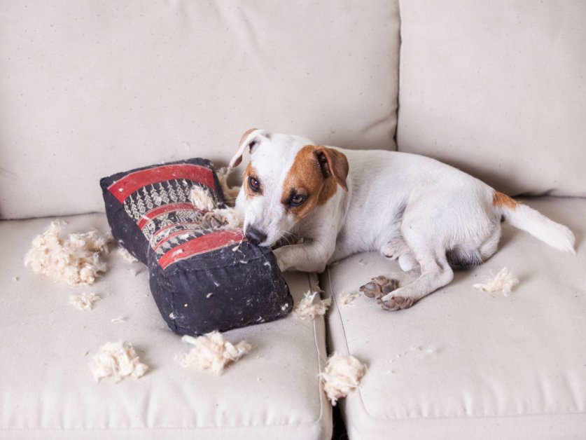 執拗にクッションを噛んだりするワンちゃんの場合は、手の届くところに置かないようにしましょう。