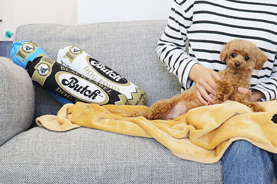 “無添加”ドッグフード『ブッチ』のブランケット通販ページです。ブッチ・ジャパンのオリジナル特製ブランケットです。
