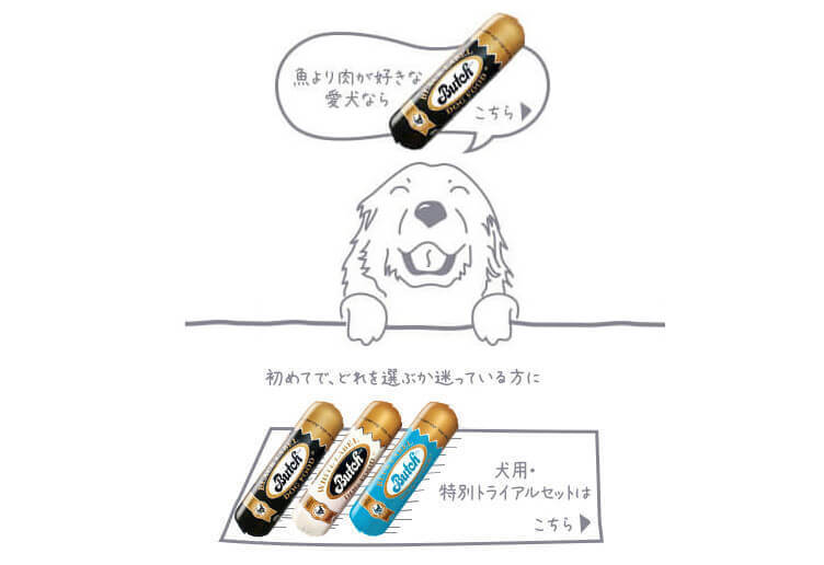 “無添加”ドッグフード・キャットフード『ブッチ』のブルー・レーベル800gの通販ページです。肉と魚をバランスよく配合したブルー・レーベルは全犬種・全猫種オールステージ対応のドッグフード・キャットフードです。
