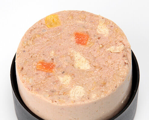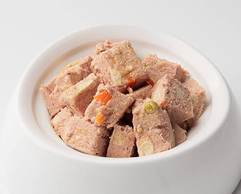 新鮮で高品質なニュージーランド産チキンをメインに、野菜類や玄米をバランスよくブレンドしています。さらに、肉や野菜だけでは補いにくい栄養素を補完するために、オメガ3脂肪酸や海藻のケルプも配合。独自の加熱ノウハウによって素材本来の栄養価や水分が活かされるよう低温調理しています。ビタミンやミネラルをはじめとした食事全体の栄養バランスを考え抜いた総合栄養食として開発しました。